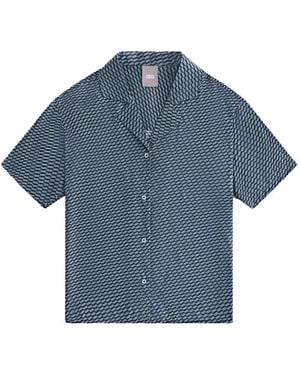 Elena Monogram Camp Shirt - Blue