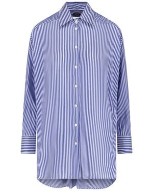 Striped Embroidered-Logo Shirt - Blue