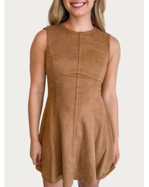 Suede Pintucked Sleeveless Mini Dress - Brown