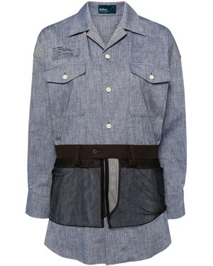 Tulle-Embellished Chambray Shirt - Gray