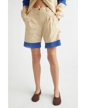 Stripe Organic Cotton Shorts With Crochet Panels - Natural