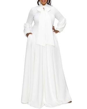 Bella Donna Long Sleeve Ribbon Tie Dress - White