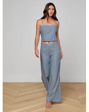Beau High Rise Wide Leg Contrast Pants - Blue