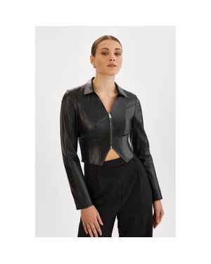 Romi Leather Corset Jacket - Black