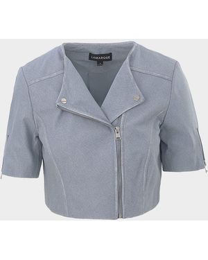 Kirsi Ch Cropped Biker Jacket - Blue