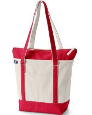 Lands End Medium 5 Pocket Zip Top Long Handle Canvas Tote Bag - Red