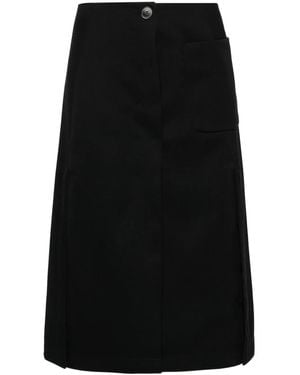 Pleated Tailored Midi Skirt - Black