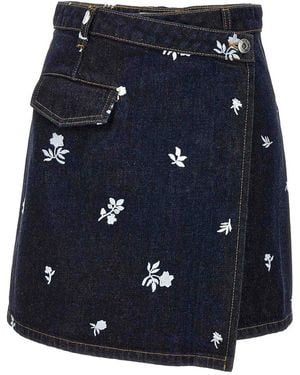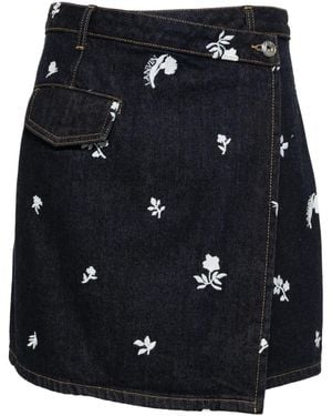 Embroidered Denim Mini Skirt - Blue
