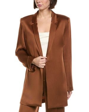 Crystal Embroidered Satin Double-Breasted Blazer - Blue