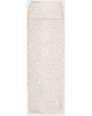 Embellished Mesh Maxi Pencil Skirt - White