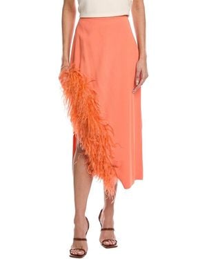 Feather-Trimmed Crepe Midi Skirt - Orange