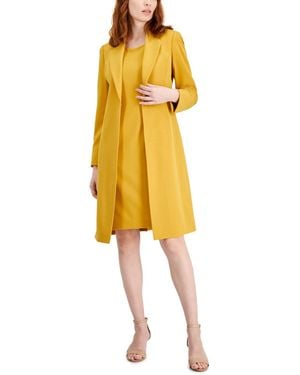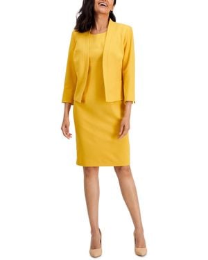 Crepe Open Front Jacket & Crewneck Sheath Dress Suit Set - Yellow