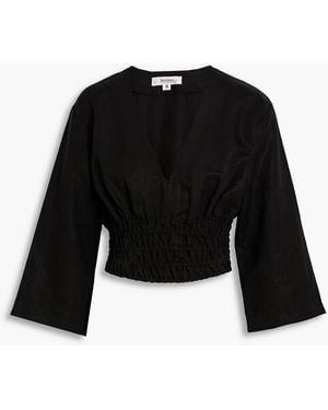 Aurora Shirred Linen And Tencel-Blend Top - Black