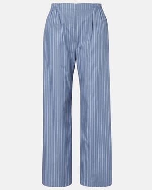Yoshi Pinstriped Cotton-Blend Poplin Wide-Leg Pants - Blue