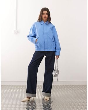 Kenny Collar Detail Oversized Canvas Bomber Jacket - Blue
