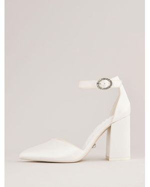 Standard Fit Occasion Ivory Satin Bridal Mid Block Heel Wedding Courts - Brown