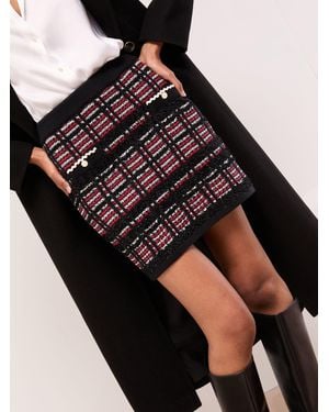 Checked Boucle Trim Detail Knitted Mini Skirt - Black