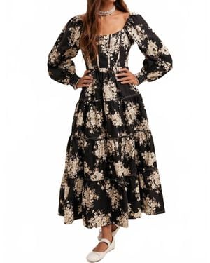 Victorian Floral Smocked Bodice Maxi Dress - Brown
