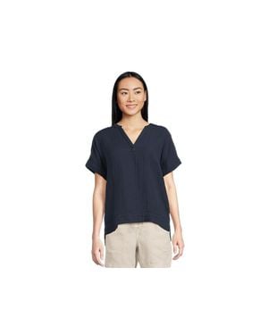 L. L. Bean Cloud Gauze Shirt Cotton Split Neck Short Sleeve Buu926 - Blue