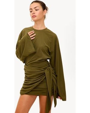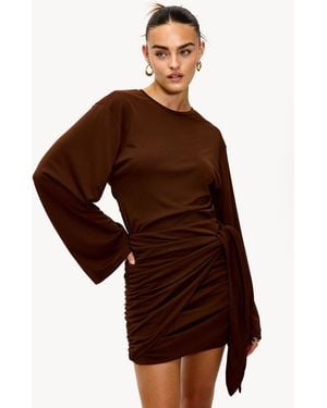 Long Sleeved Wrap Detail Mini Dress - Brown