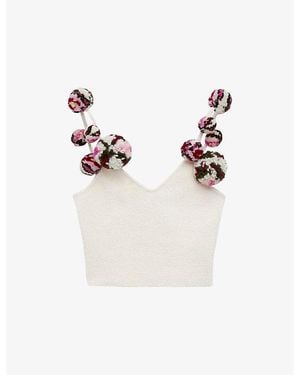 X Paula's Ibiza Pom-Pom Knit Crop Top - Natural
