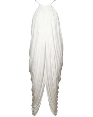 Silk Draped Anagram-Detail Dress - White