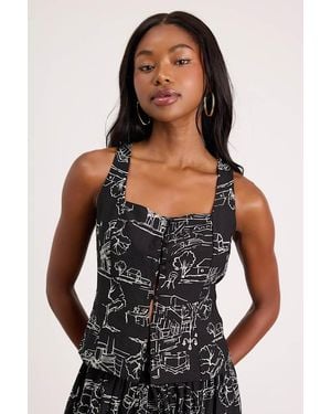 Ravia Print Button-Front Tank Top - Black