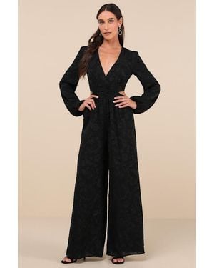 Celebrating Romance Long Sleeve Wide-Leg Jumpsuit - Black