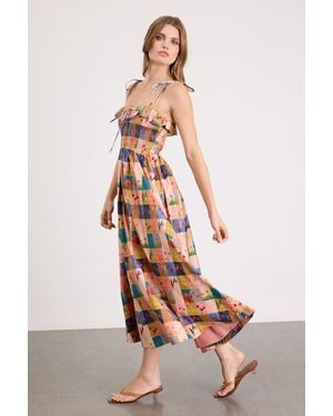 Alessandra Blush Multi Gingham Floral Tie-Strap Midi Dress - White