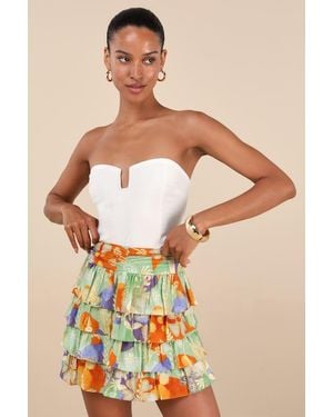 Halyna Multi Boho Print Tiered Mini Skirt - Multicolor