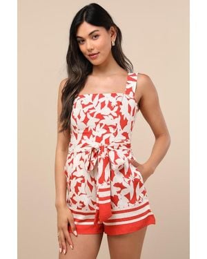 Maite Floral Belted Sleeveless Romper - Red