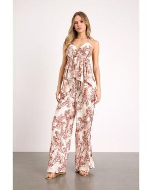 Emlyn Rose Multi Leaf Print O-Ring Wide-Leg Jumpsuit - Pink