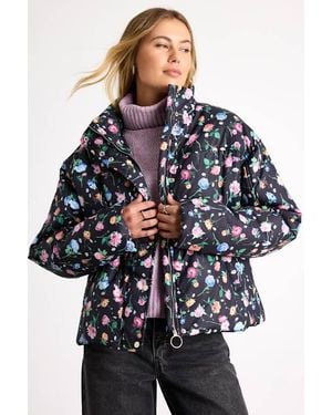 Bundled Perfection Bright Floral Quilted Puffer Jacket - Blue