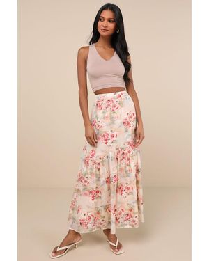 Subtle Sweetness Cream Floral Print Tiered Maxi Skirt - Natural