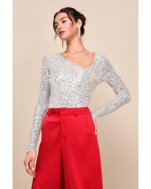 Unique Vibe Sequin Asymmetrical Long Sleeve Top - Red