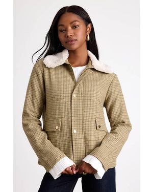 Bertie Plaid Tweed Faux Fur Collar Jacket - Natural