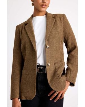 Lindy Plaid Tweed Cropped Blazer - Brown