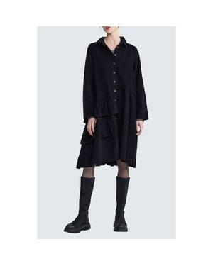 Isolde Ruffled Cord Velvet Shirt Dress - Black