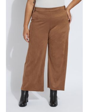 Vionette Faux Suede Wide Leg Pants - Brown