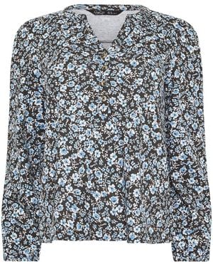 Petite Half Placket Long Sleeve Printed Jersey Shirt - Gray