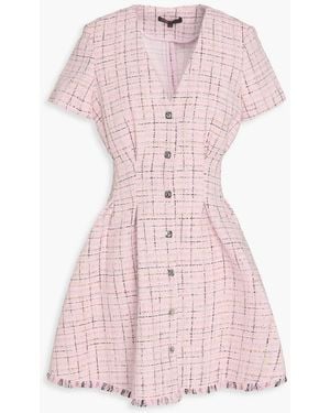 Checked Metallic Tweed Mini Shirt Dress - Pink