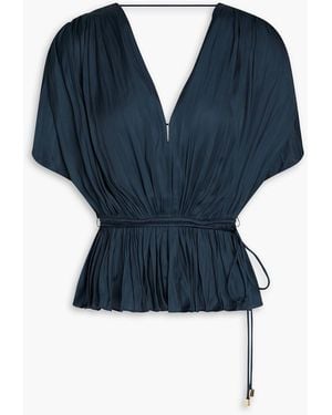Pleated Satin Peplum Top - Blue