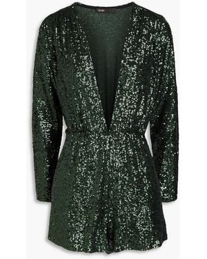 Sequin-embellished Knitted Playsuit - Green