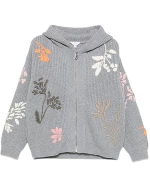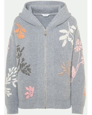 Camelia Embroidered Cashmere Zip Bomber Jacket - Gray