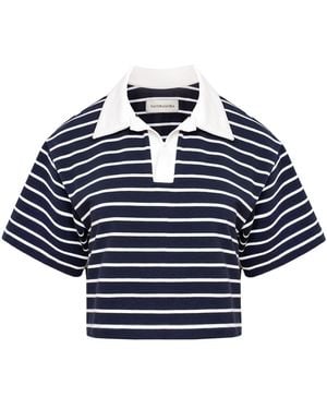 Striped Cotton Cropped Top With Collar – Goia - Blue