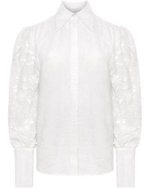 Cotton Ecru Shirt With Embroidered Sleeves – Madden - White