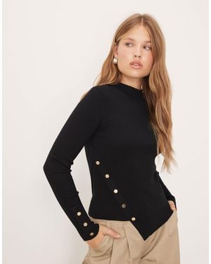 Asymmetric Knitted Top With Gold Buttons - Black