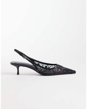 Slingback Pointed Toe Kitten Heel Pump - Black