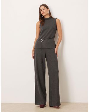 Elasticated Waist Straight Leg Pants Co-Ord - Gray