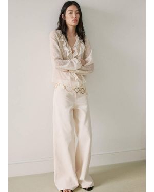 Cotton Mix Delicate Lace Ruffle Blouse - Natural